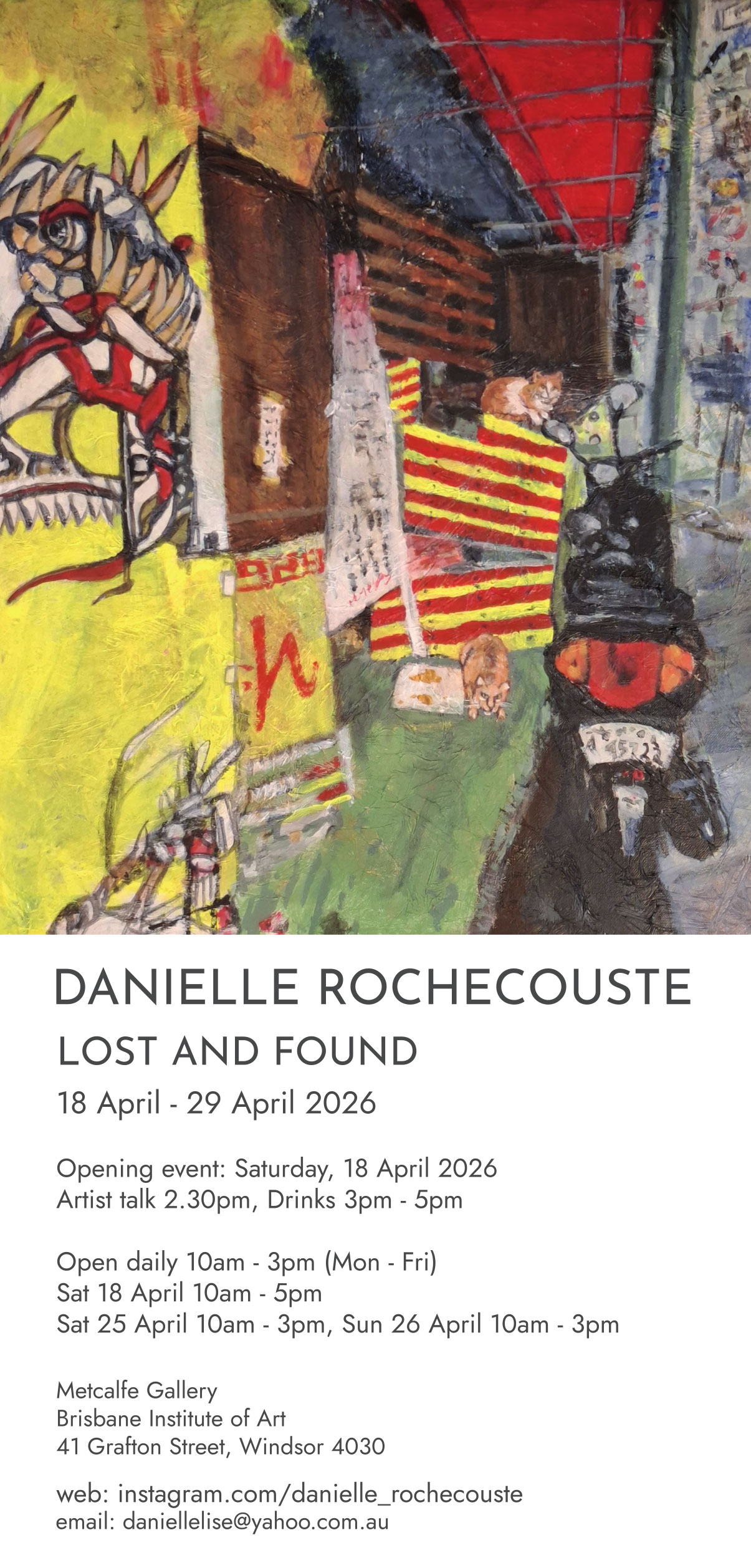 Metcalfe Gallery, located within the Brisbane Institute of Art building in Windsor, is a contemporary exhibition space that aims to present a dynamic program of exhibitions across its three gallery spaces. Central to the exhibition program is the presentation of a visual culture which honours risk, experimentation and creativity, and stimulates dialogue and debate, especially amongst the BIA audience.