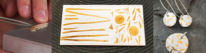 WORKSHOP NOW FULL. Keum Boo is the Korean art of fusing gold to other metals through diffusion bonding. This 2-day workshop with Catherine Large will give you the opportunity to learn and practice this technique on Day 1, and complete a pendant or pair of earrings on Day 2. You will learn how to prepare the metal, including the gold granules, and to control the heat required while fusing the gold to the surface of the metal. This technique is suitable for using with vitreous enamelling.
